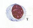 Esta é uma fotografia de uma lâmina corada com H/E em um microscópio ótico. Normalmente, o núcleo do linfócito T, ocupa grande parte de seu citoplasma.