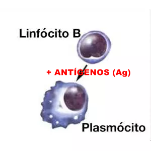 São os Linfócitos B, que em presença dos antígenos (Ag), irão se transformar em plasmócitos e produzir as Imunoglobulinas (Ig), que serão os anticorpos específicos nas reações imunológicas nos hospedeiros. Ou seja, Ig X Ag.