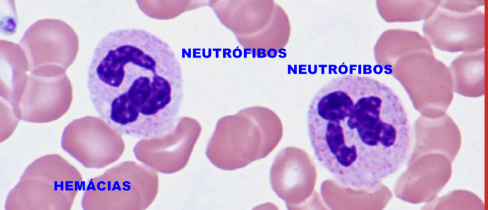 NEUTRÓFILOS: São células sanguíneas leucocitárias que fazem parte essencial do sistema inato. Pertencem a classe dos granulócitos, junto aos eosinófilos e basófilos, pois apresentam núcleos lobulares e contêm grânulos citoplasmáticos. Estão envolvidos na defesa contra bactérias, fungos, vírus e partículas.