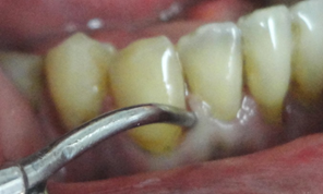 Esta imagem é de um biofilme mineralizado, chamado de cálculo ou tártaro, que se não removido, causará uma periodontite inflamatória, se não tratada, os dentes serão perdidos com o tempo.