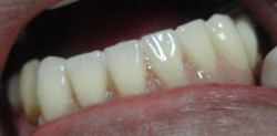 Esta paciente veio ao consultório com a indicação de uma raspagem nesta região. Pois segundo seu Dentista, sua gengiva esta inflamada. Um exame radiográfico foi realizado, mostrando uma grande perda de osso, os dentes apresentavam uma grande mobilidade, com um prognóstico muito sóbrio. O caso da paciente, foi minuciosamente discutida com a paciente, mostrado que os dentes da bateria inferior anterior estavam perdidos, não haveria meios mais, de serem recuperados. Foi um choque no início para a paciente, contudo após um exame geral em sua boca, mostrando as profundas bolsas intraósseas, com inflamações generalizadas, e o risco que ela corria, não somente pela perda dos dentes, mas comprometimentos gerais incluindo problemas sérios cardíacos, ela se conscientizou da necessidade urgente de tratamento.